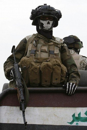 Порывшись по интернету, я с удивлением нашел довльно много фото балаклавы с черепом на американских солдатах, воюющих на Ближнем Востоке.
