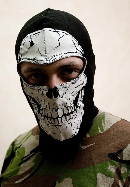 Причем, на всех этих фото балаклава с черепом имеет одинаковый рисунок, и видимо выпускается где то промышленно.